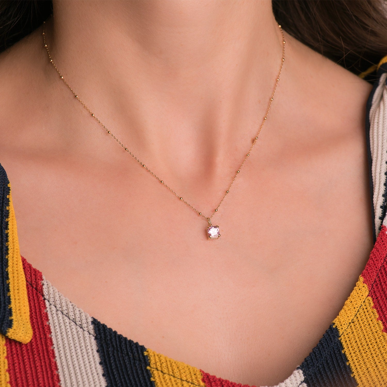 18K COLGANTE ORO AMARILLO CUADRADO CON GARRAS Y PIEDRA ROSA 5,5 X 5,5 MM.