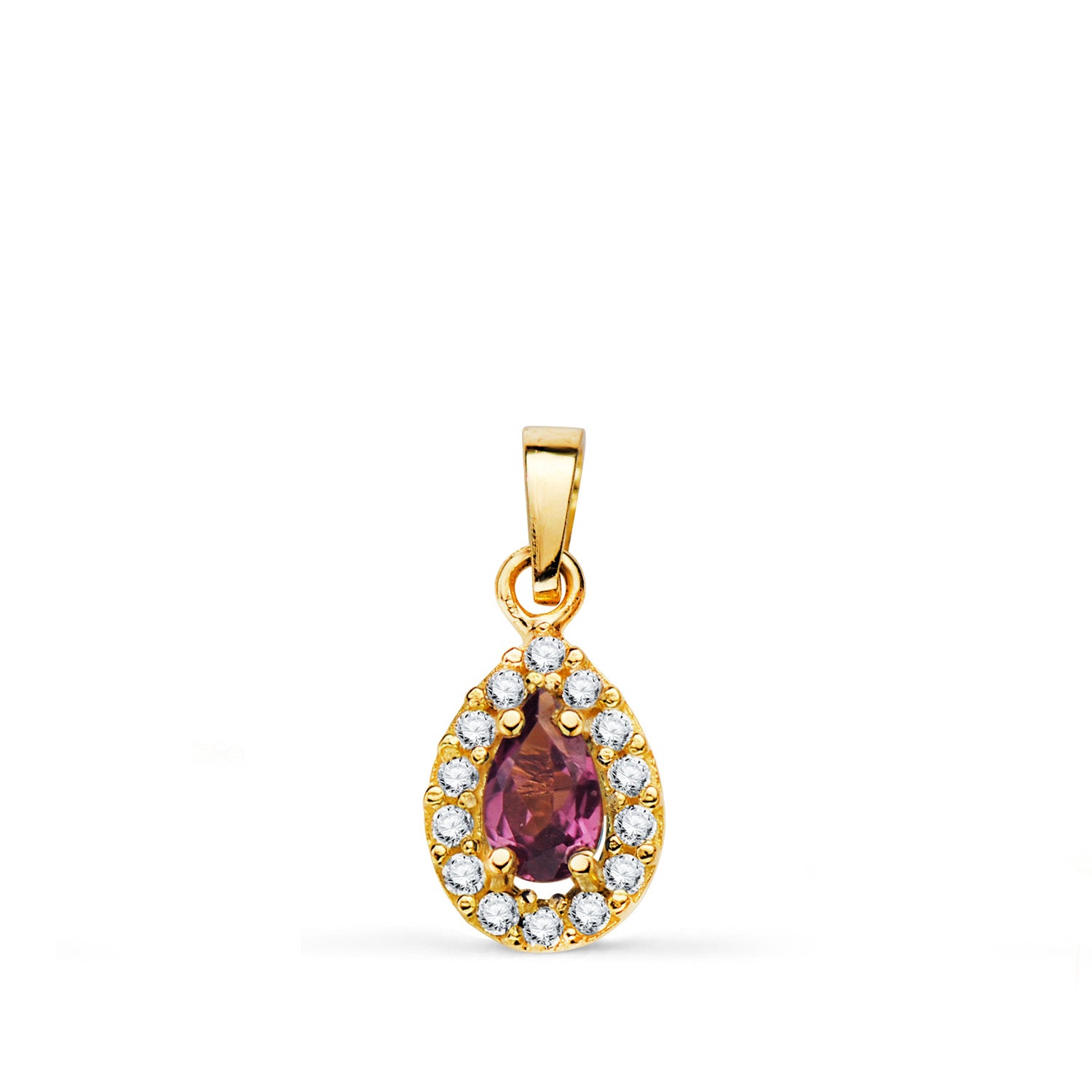 18K COLGANTE ORO AMARILLO PIEDRA GOTA AMATISTA Y CIRCONITAS. 11 X 6 MM.