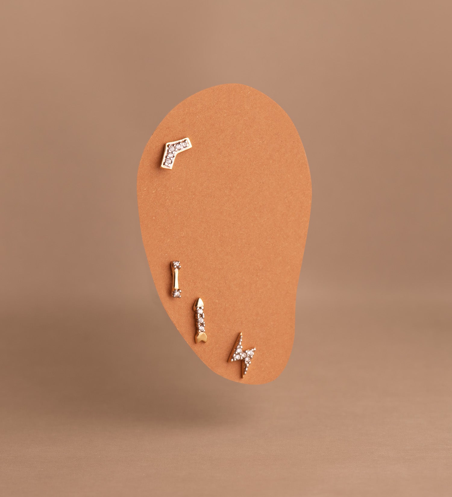18K PIERCING ORO BICOLOR FLECHAS CON CIRCONITAS. MEDIDA: 8,5 X 3,5 MM. CIERRE TUERCA