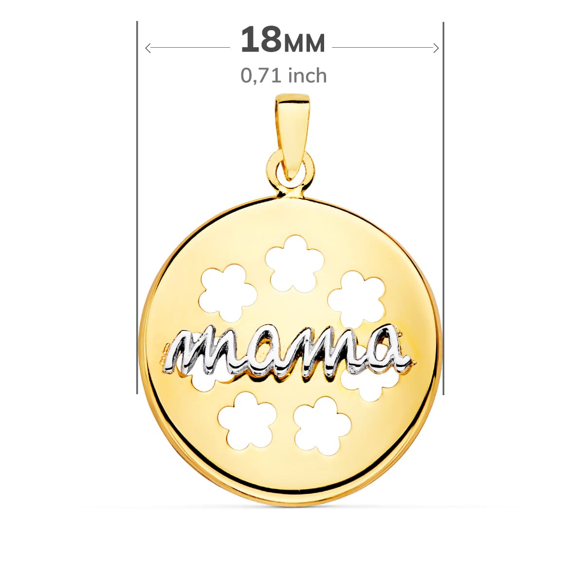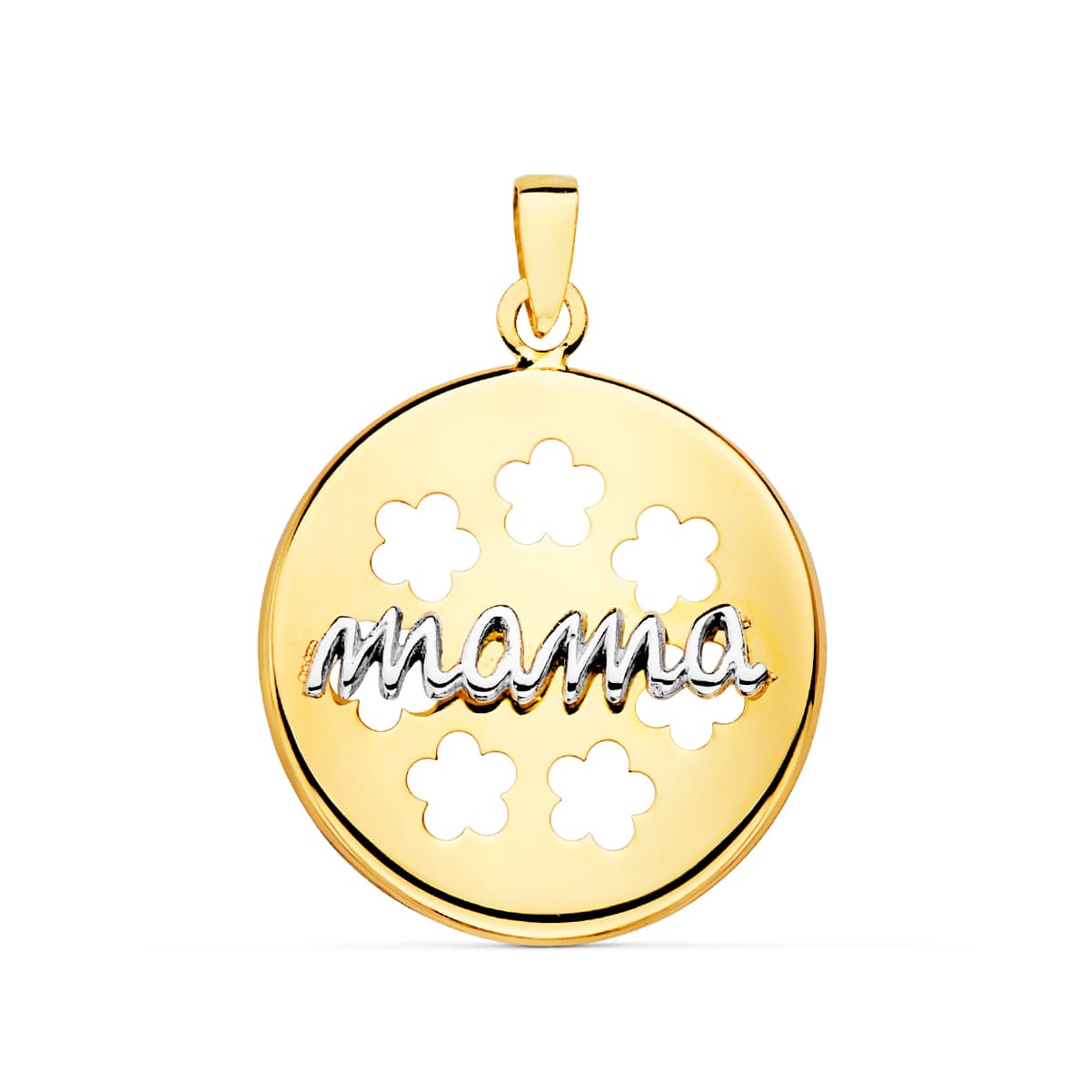 18K COLGANTE ORO BICOLOR REDONDO CON FLORES CALADAS. 18 MM