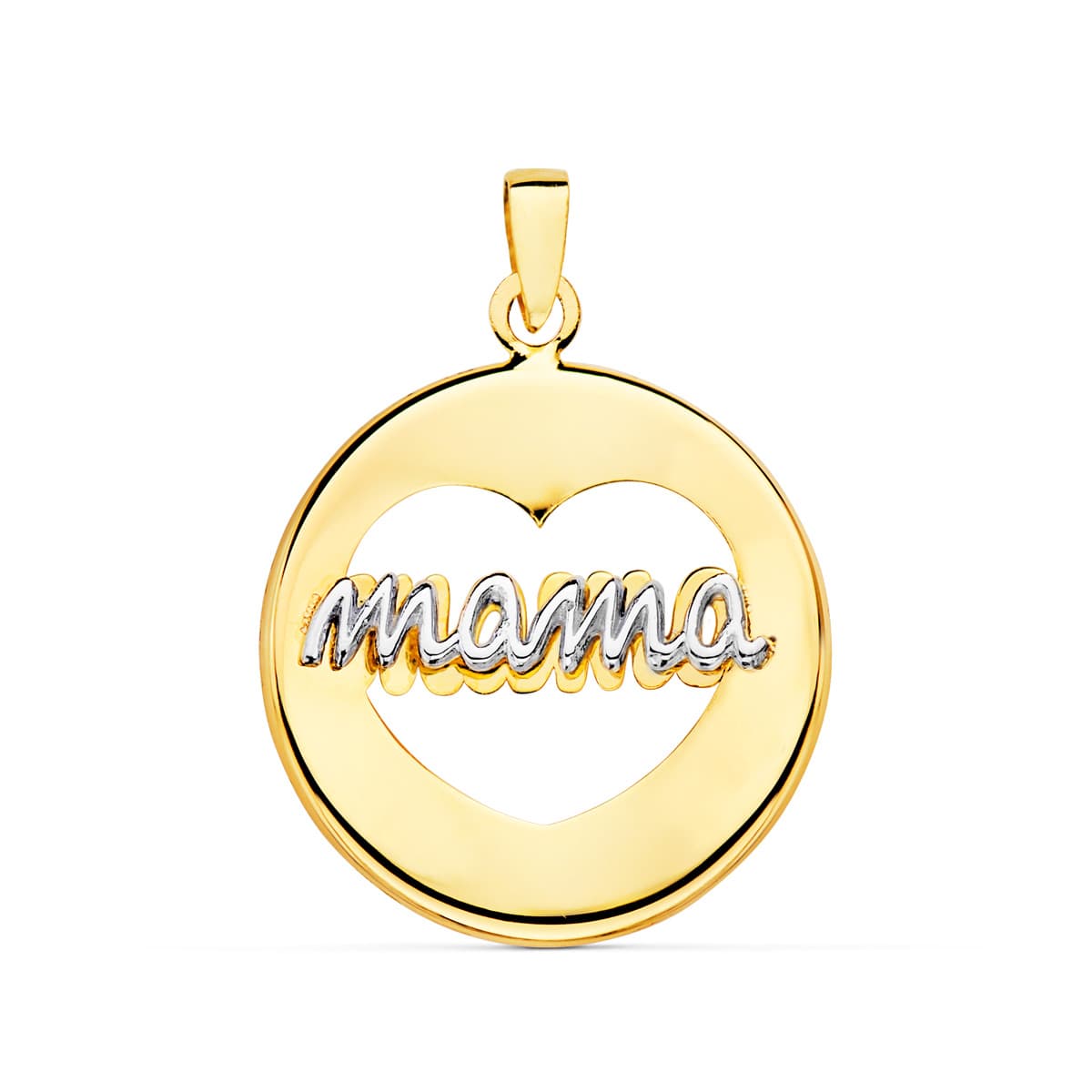 18K COLGANTE ORO BICOLOR REDONDO CORAZON CALADO 18 MM