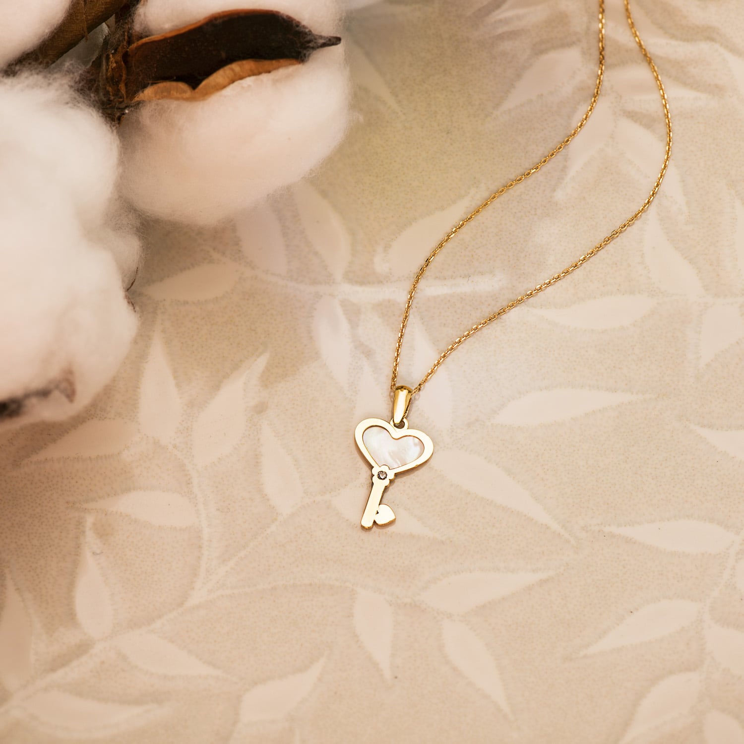 18K COLGANTE ORO AMARILLO LLAVE DE NACAR CON CORAZON Y CIRCONITA 18X11 MM