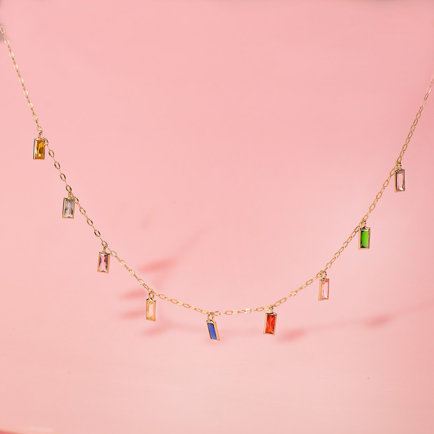 18K GARGANTILLA ORO AMARILLO Y COLGANTES DE CIRCONITA DE COLORES CADENA 42+3 CM