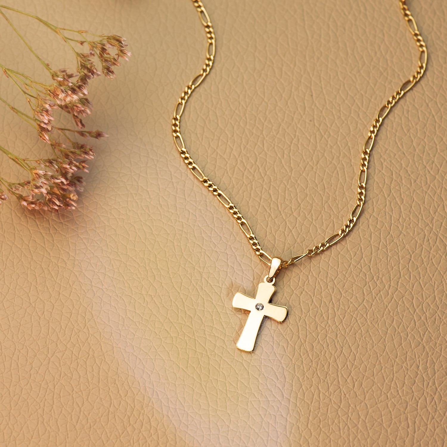 18K CRUZ ORO AMARILLO LISA EN BRILLO CON CIRCONITA 20 X 12 MM