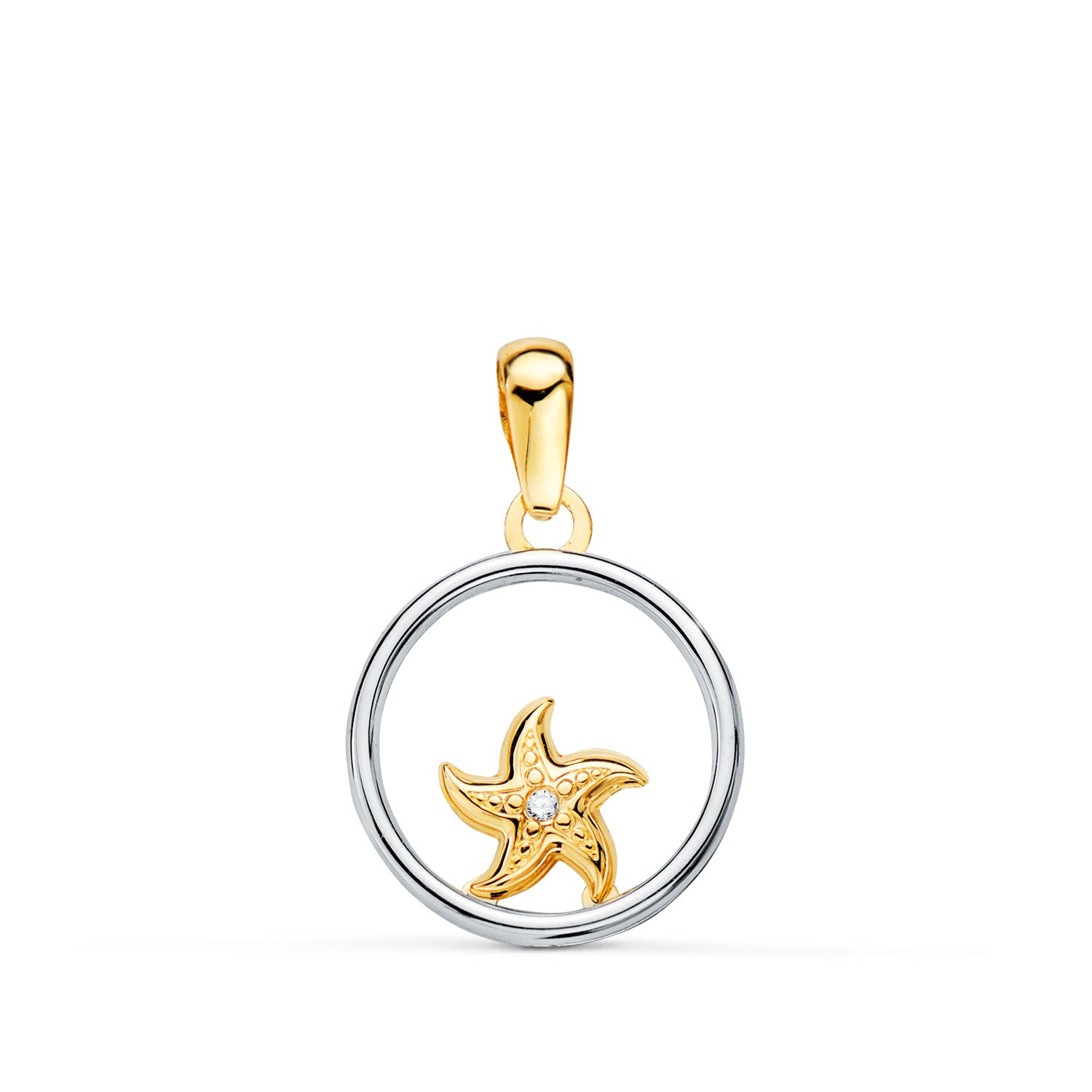 18K COLGANTE ORO BICOLOR REDONDO CON ESTRELLA DE MAR. 13MM