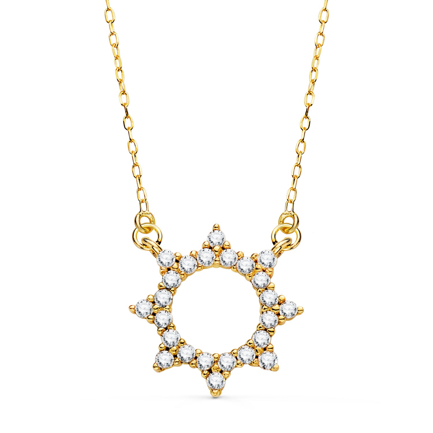 18K GARGANTILLA ORO AMARILLO COLGANTE SOL 14MM CADENA FORZADA 42 5 CM