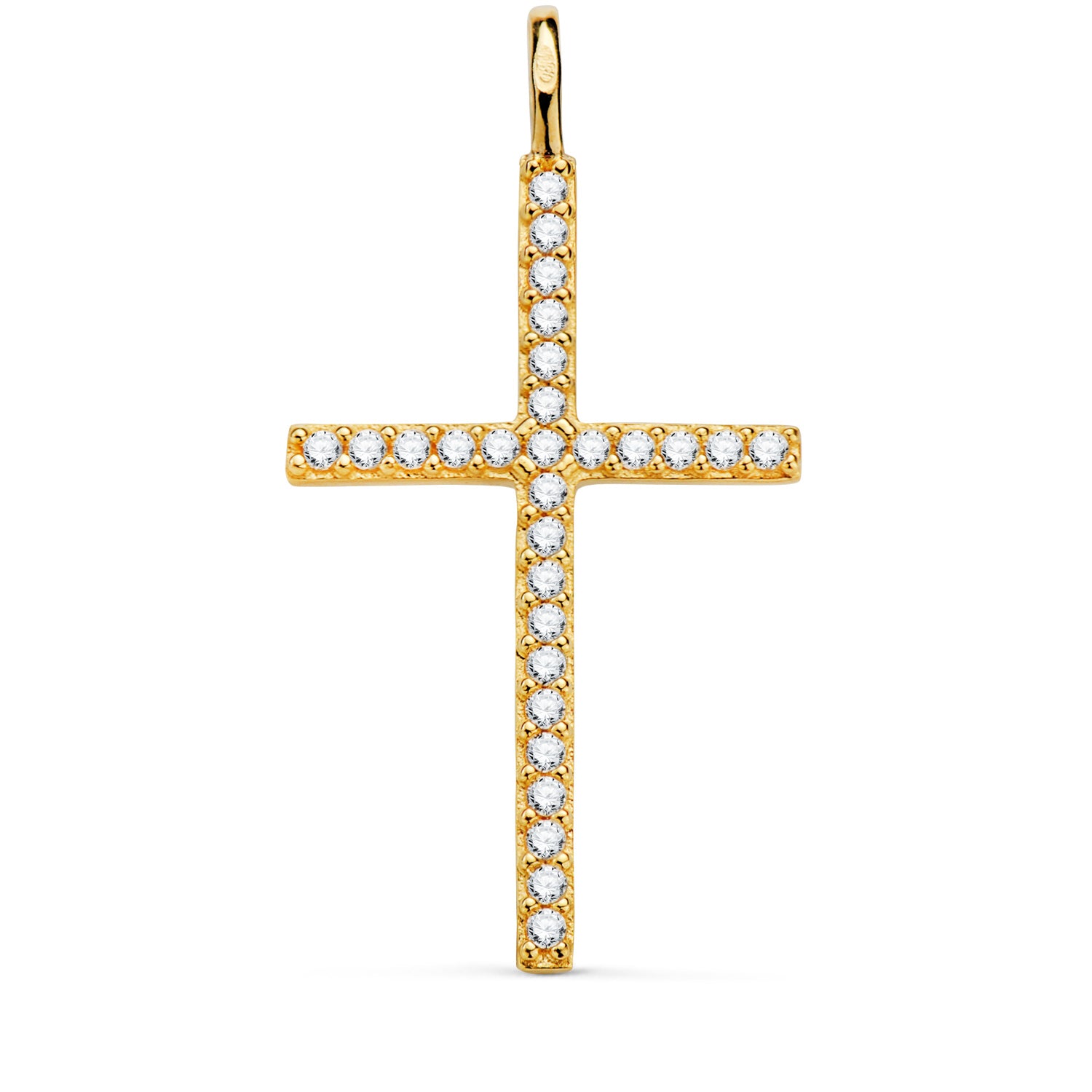 18K CRUZ ORO AMARILLO CON CIRCONITA BLANCAS 37 X 19 MM. ANILLA FIJA