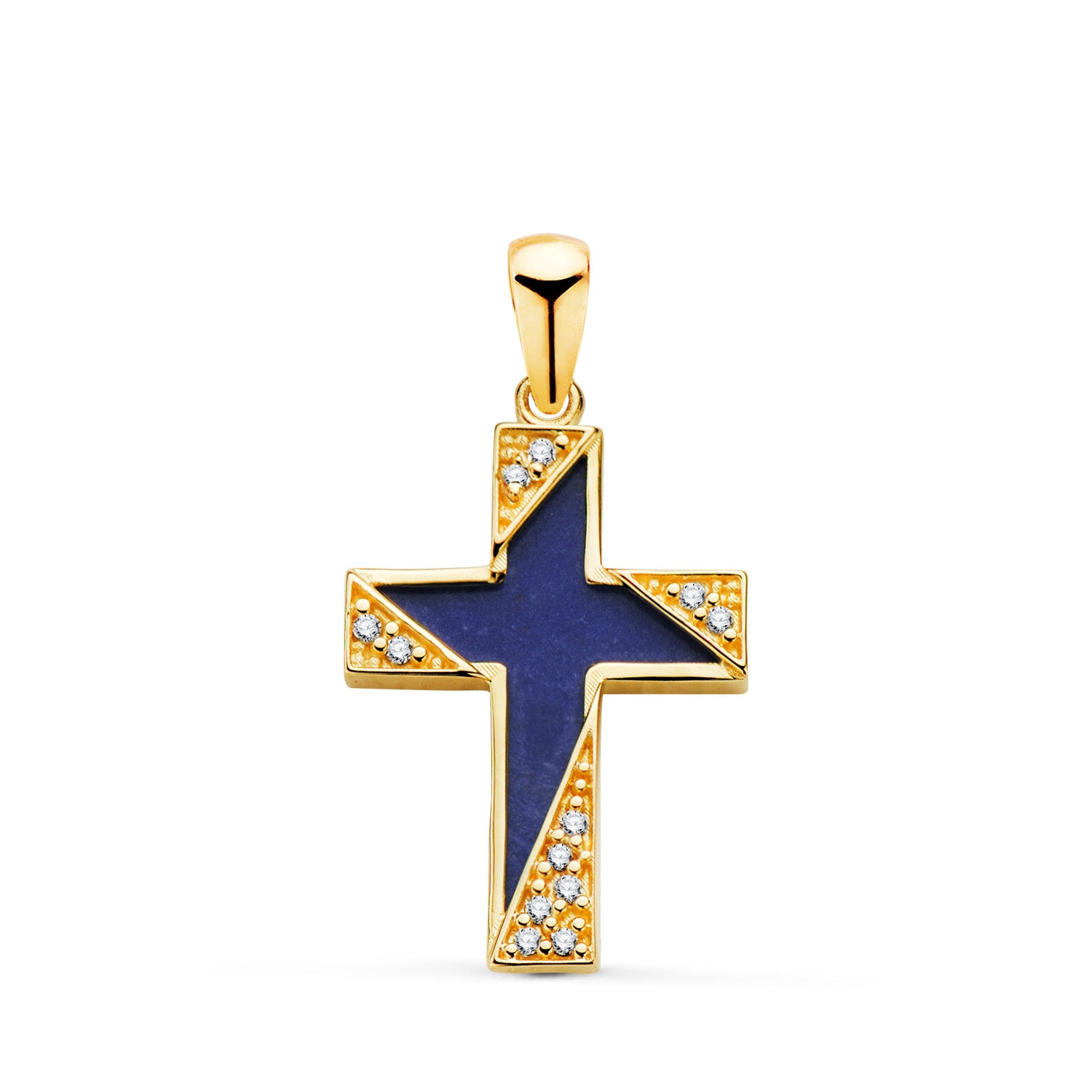 18K CRUZ ORO AMARILLO LAPIZLAZULI DETALLES CON CIRCONITAS. MEDIDA: 19 X 12,5 MM