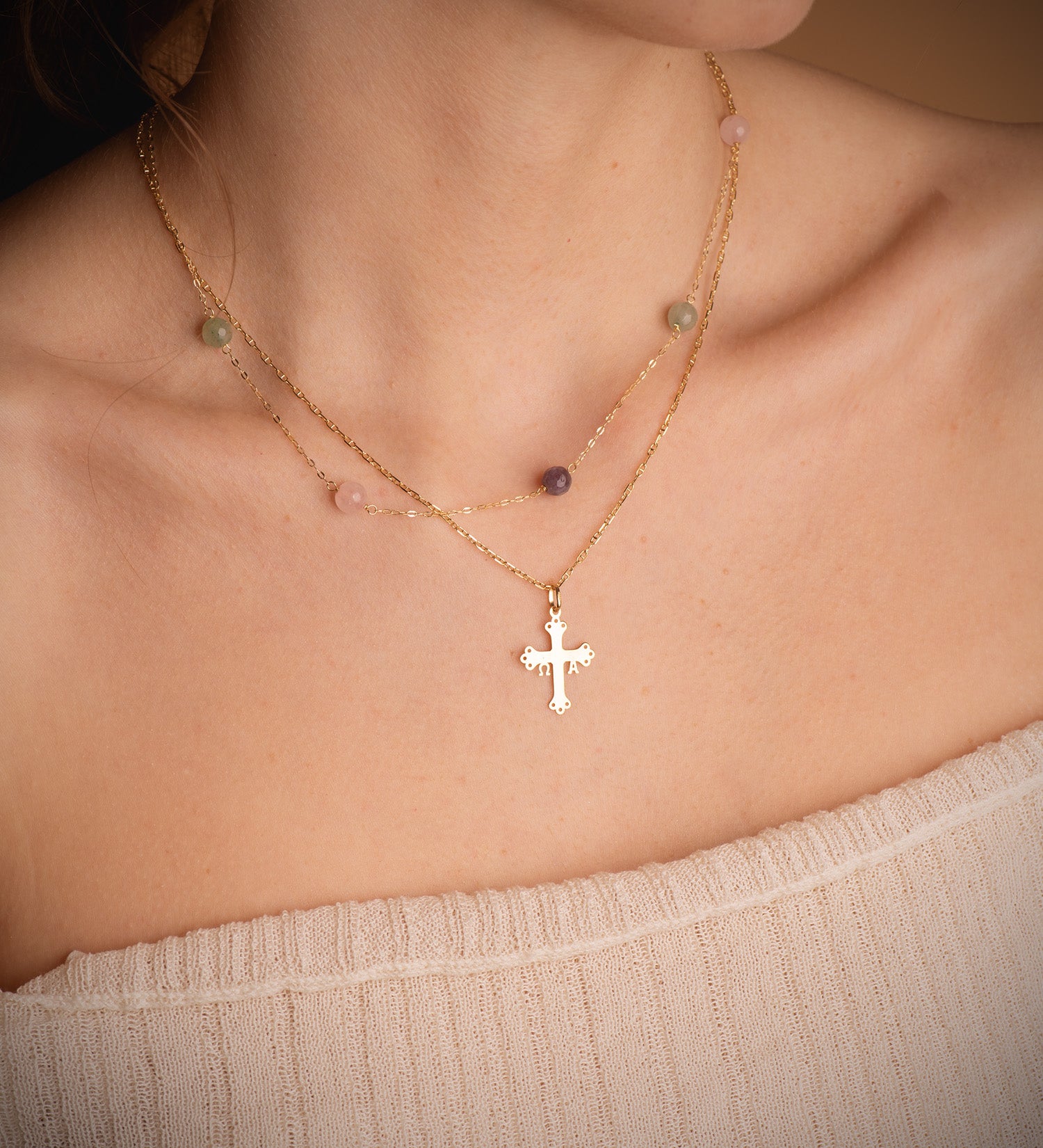 18K COLGANTE ORO AMARILLO CRUZ DE COVADONGA SILUETA EN BRILLO. 18 X 13 MM