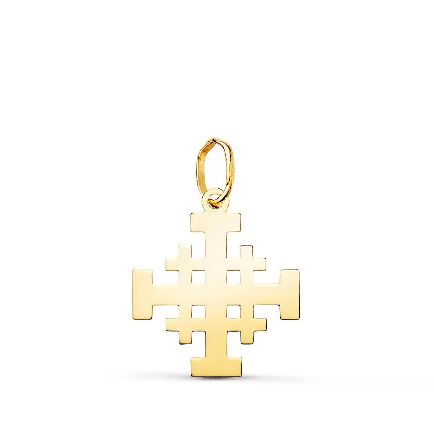 18K COLGANTE ORO AMARILLO CRUZ DE JERUSALEN SILUETA EN BRILLO. 17 X 15 MM