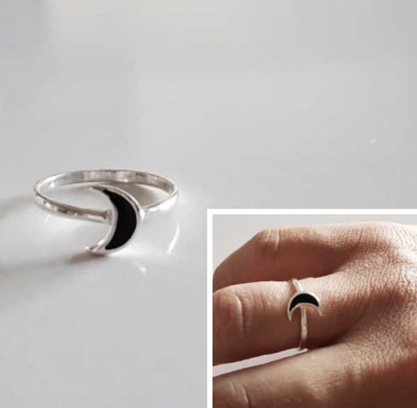 Anillo De Plata Luna Con Esmalte Negro Marca Thaiba Bijoux Material Plata De Ley 925 Mm Indique Su Talla En Informacion Adicional Del Pedido Se Presenta Perfectamente Estuchado.