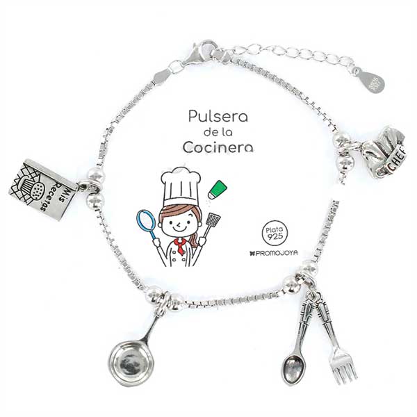 Pulsera Promojoya. Profesion: Pulsera De La Cocinera. Material Plata De Ley 925 Mm Cadena Veneciana Fuerte Con Colgantes Tematicos Sobre La Profesion. El Largo De La Cadena Se Puede Ajustar Abrochando En Una U Otra Asa. Se Presenta En Un Lujoso Estuche Transparente Y Con Tarjeta Dedicatoria.