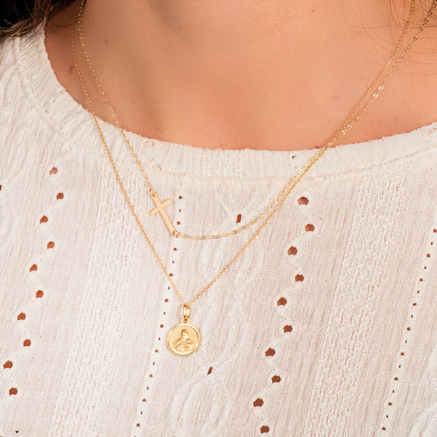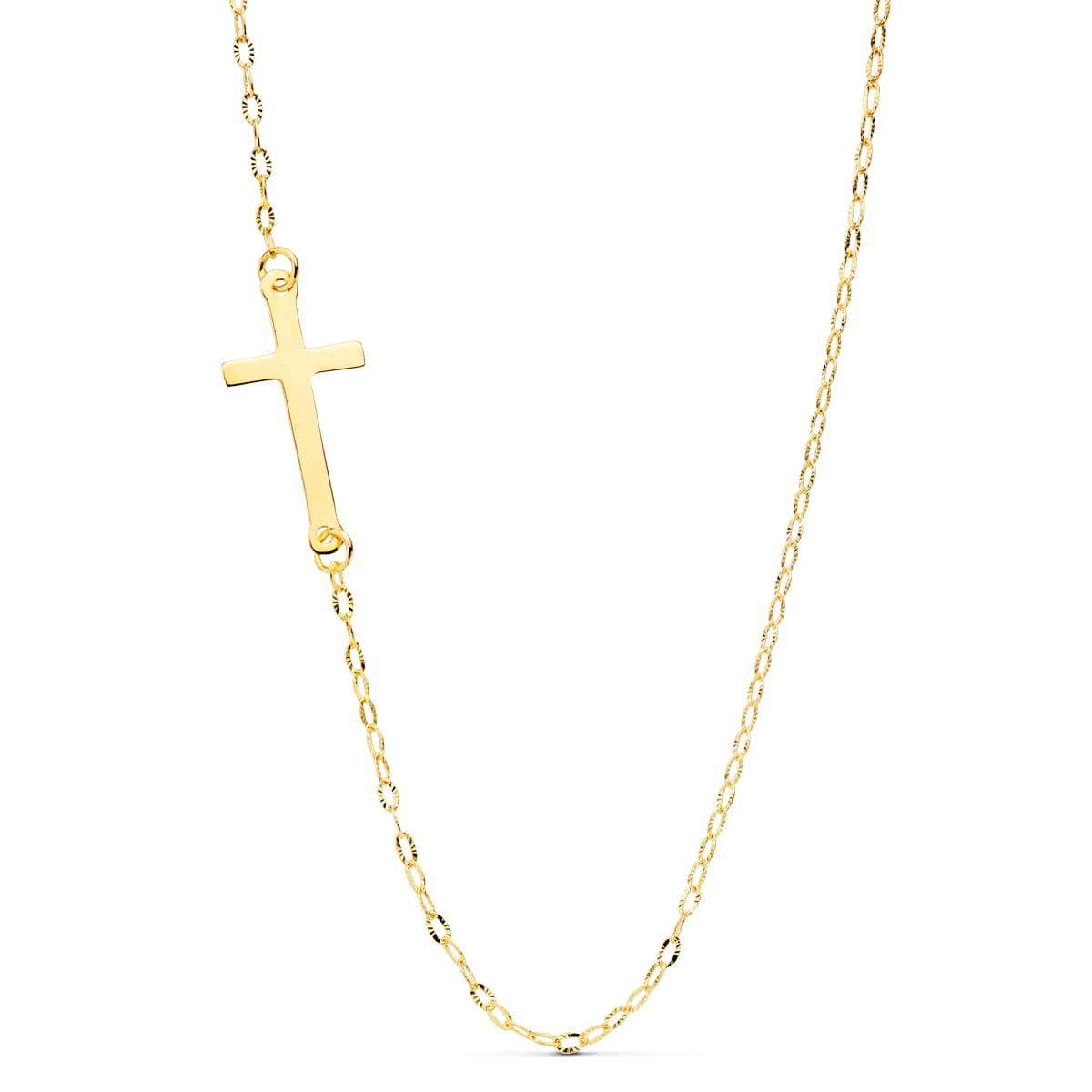 18K GARGANTILLA ORO AMARILLO CRUZ 17X8 MM CADENA FORZADA 42CM