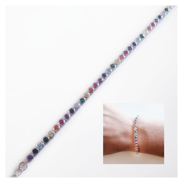 Pulsera De Alta Joyeria Con Zirconitas Multicolor En Plata De Ley Y Cierre Reforzado. Ideal Para Cualquier Evento Cualquier Estilo. Material Plata De Ley 925 Mm Esta Joyas Se Presenta Perfectamente Estuchada