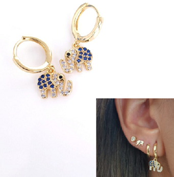 Pendientes Elefante De La Suerte Con Circonitas Blancas Y Azules. Material: Plata De Ley Con Bano De Oro 14 Quilates. Cierre Presion Se Presenta Perfectamente Estuchado Y Preparado Para Regalo.