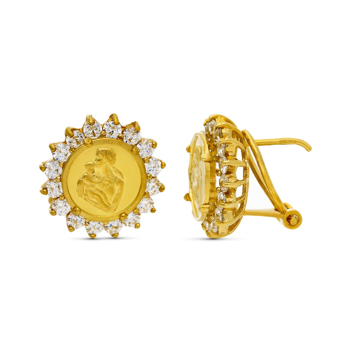 18K PENDIENTES ORO AMARILLO MONEDA MADRE. 14X13 MM CIERRE OMEGA