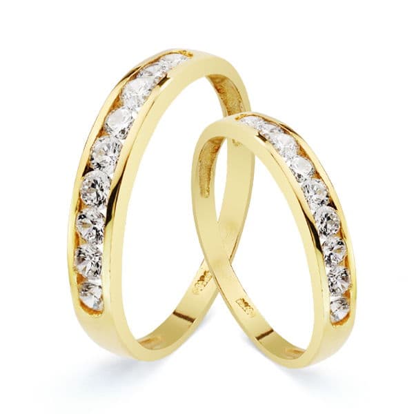18K ALIANZA ORO AMARILLO CARRIL CON CIRCONITAS. ANCHO: 3,5 MM