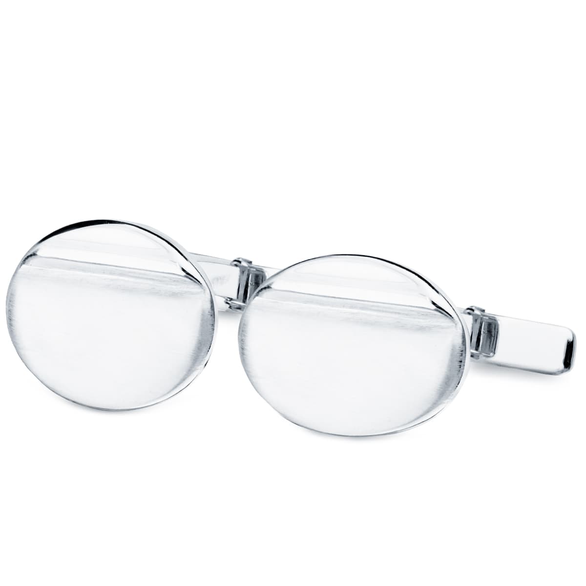 18K GEMELOS ORO BLANCO OVAL MATE Y BRILLO 18X13 MM CIERRE RIGIDO OSCILANTE