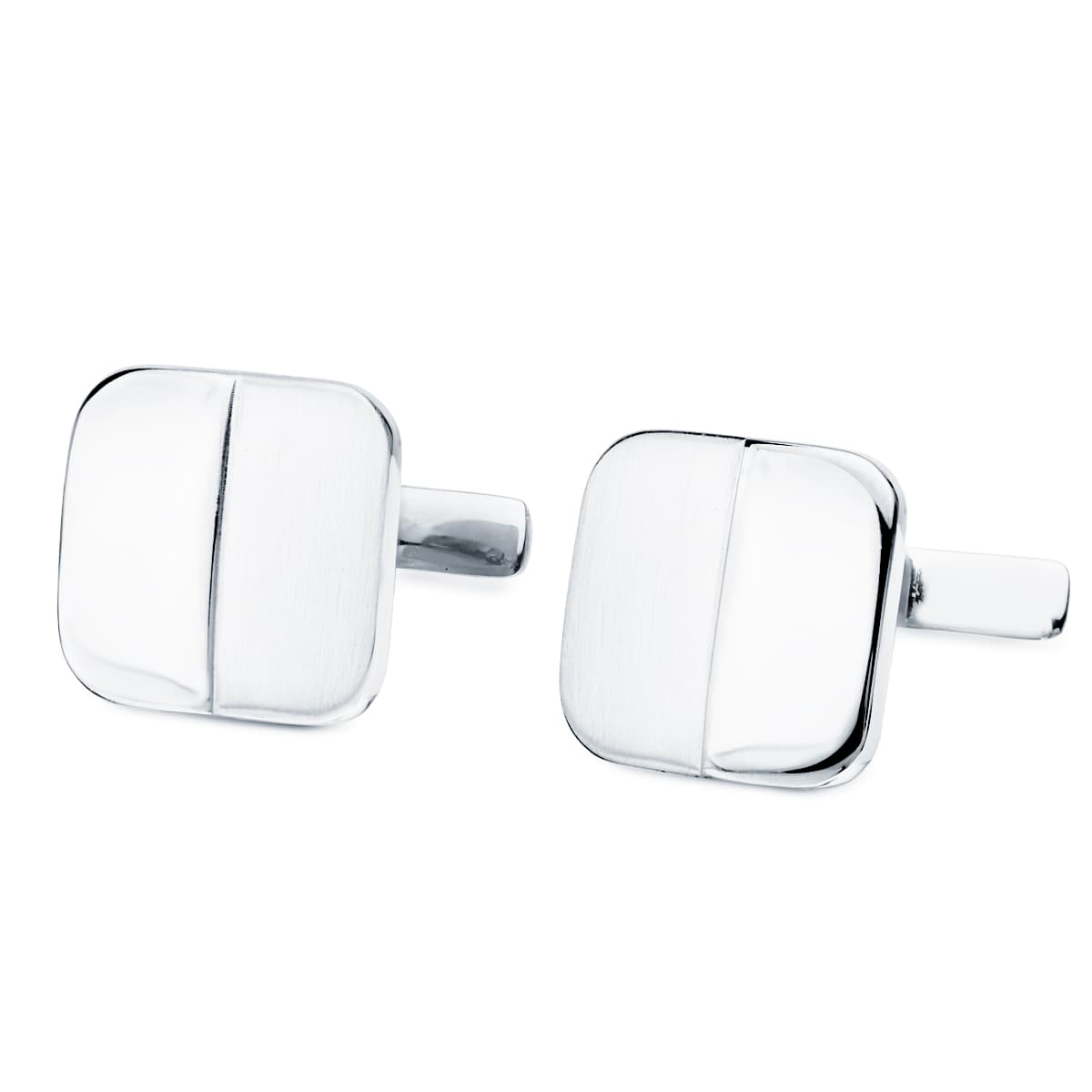 18K GEMELOS ORO BLANCO CUADRADOS MATE Y BRILLO 14X14 MM CIERRE RIGIDO OSCILANTE