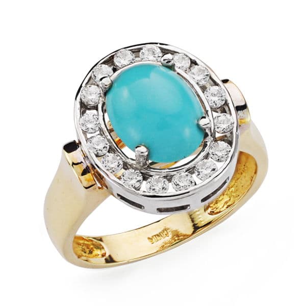 18K SORTIJA ORO BICOLOR OVAL CON TURQUESA CABUJON 10X8 MM. ANCHO: 15,5 MM