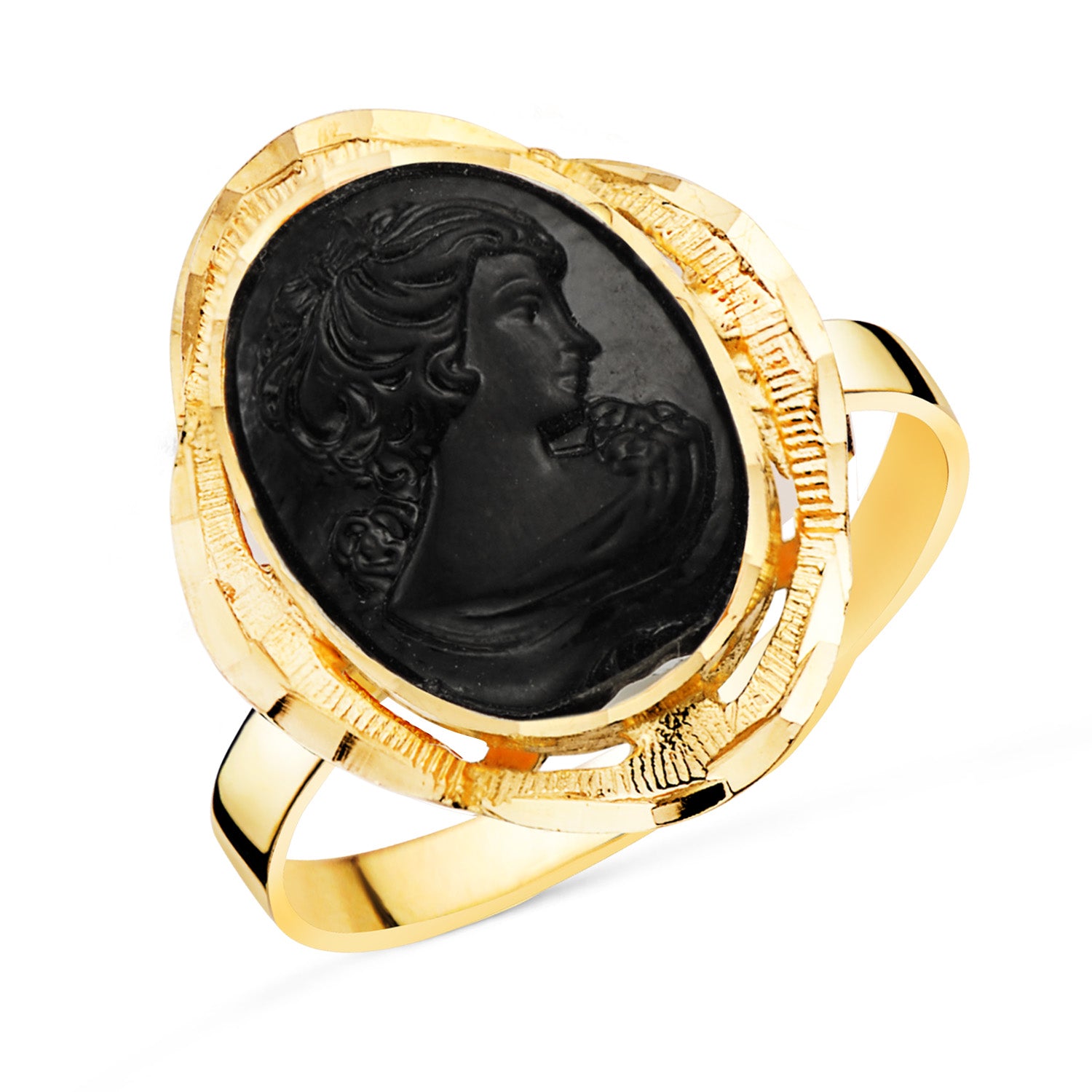 18K SORTIJA ORO AMARILLO CAMAFEO NEGRO OVAL CERCO TALLADO. MEDIDA: 19X14 MM