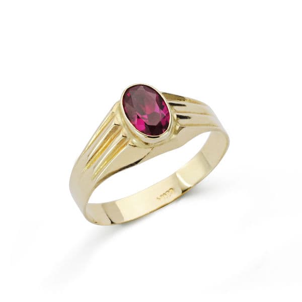9K SELLO ORO AMARILLO BEBE CIRCONITA OVAL ROJA 6X4 MM
