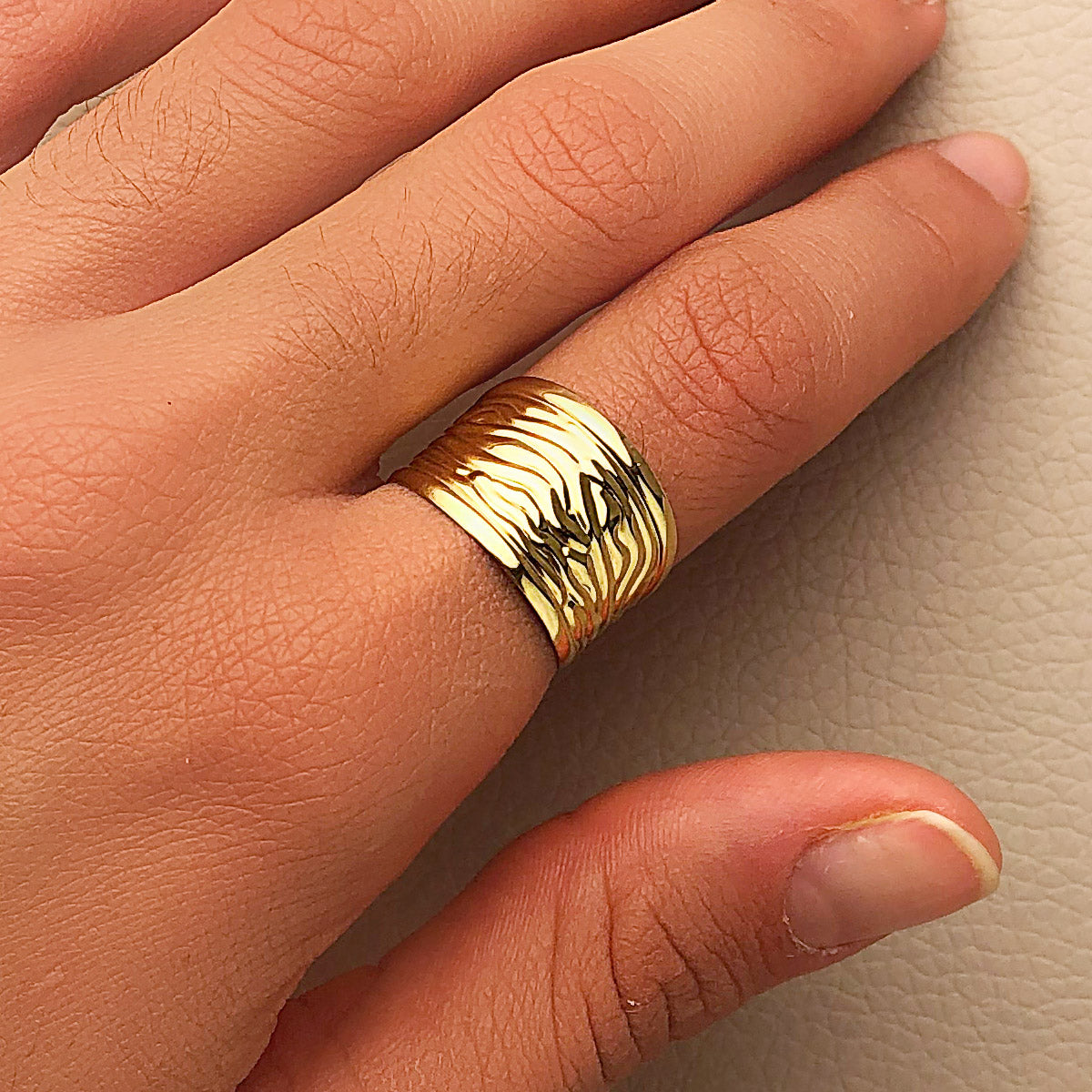 9K SORTIJA ORO AMARILLO ESTAMPADA EN BRILLO. ANCHO: 13 MM