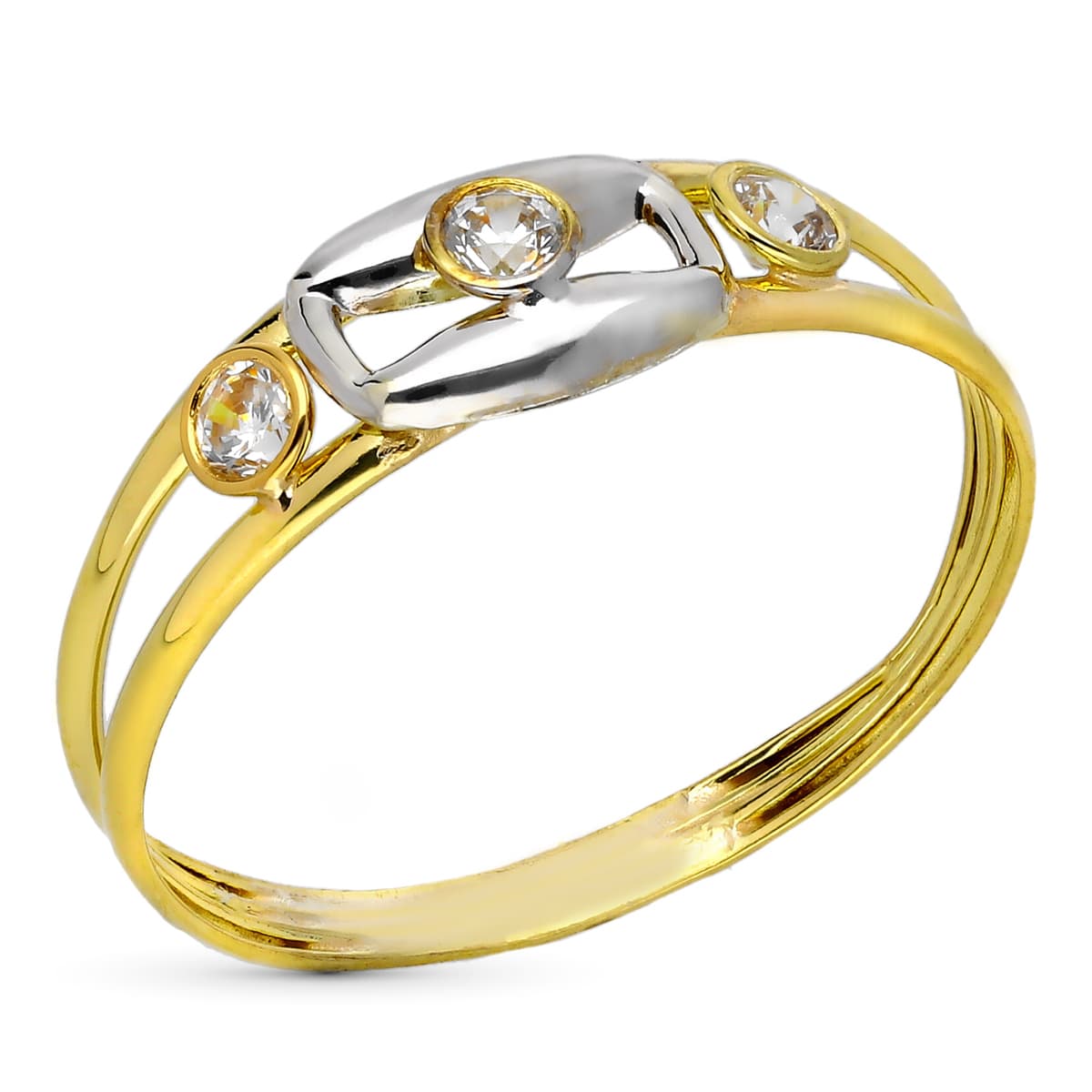9K SORTIJA ORO BICOLOR DOBLE CUERPO MOTIVO CON CIRCONITAS. ANCHO: 6 MM