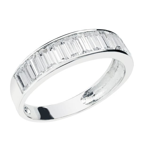 9K SORTIJA ORO BLANCO CON CIRCONITA EN CARRIL. ANCHO: 4,5 MM