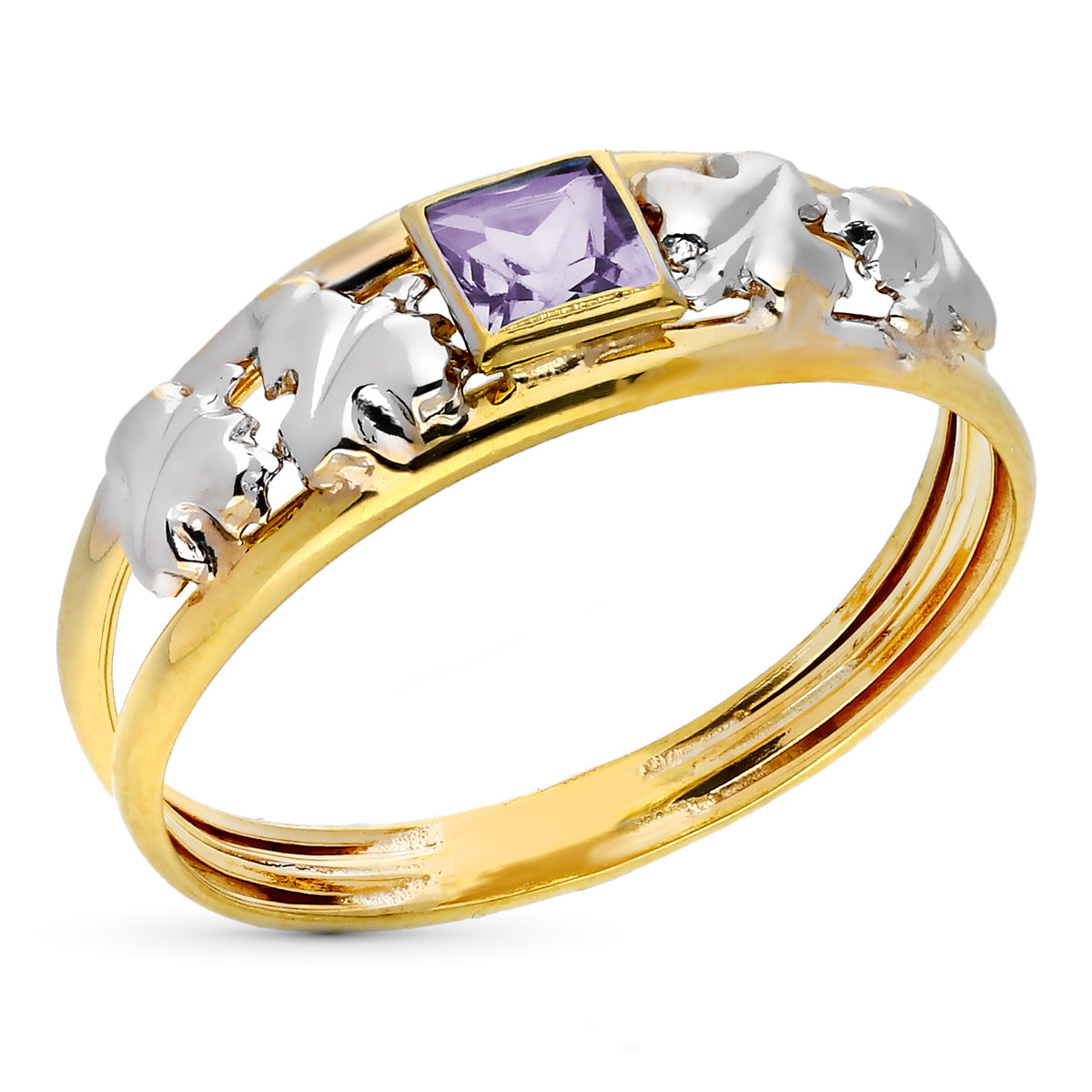 9K SORTIJA ORO BICOLOR DOBLE CUERPO CON CIRCONITA AMATISTA CUADRADA. ANCHO: 6 MM