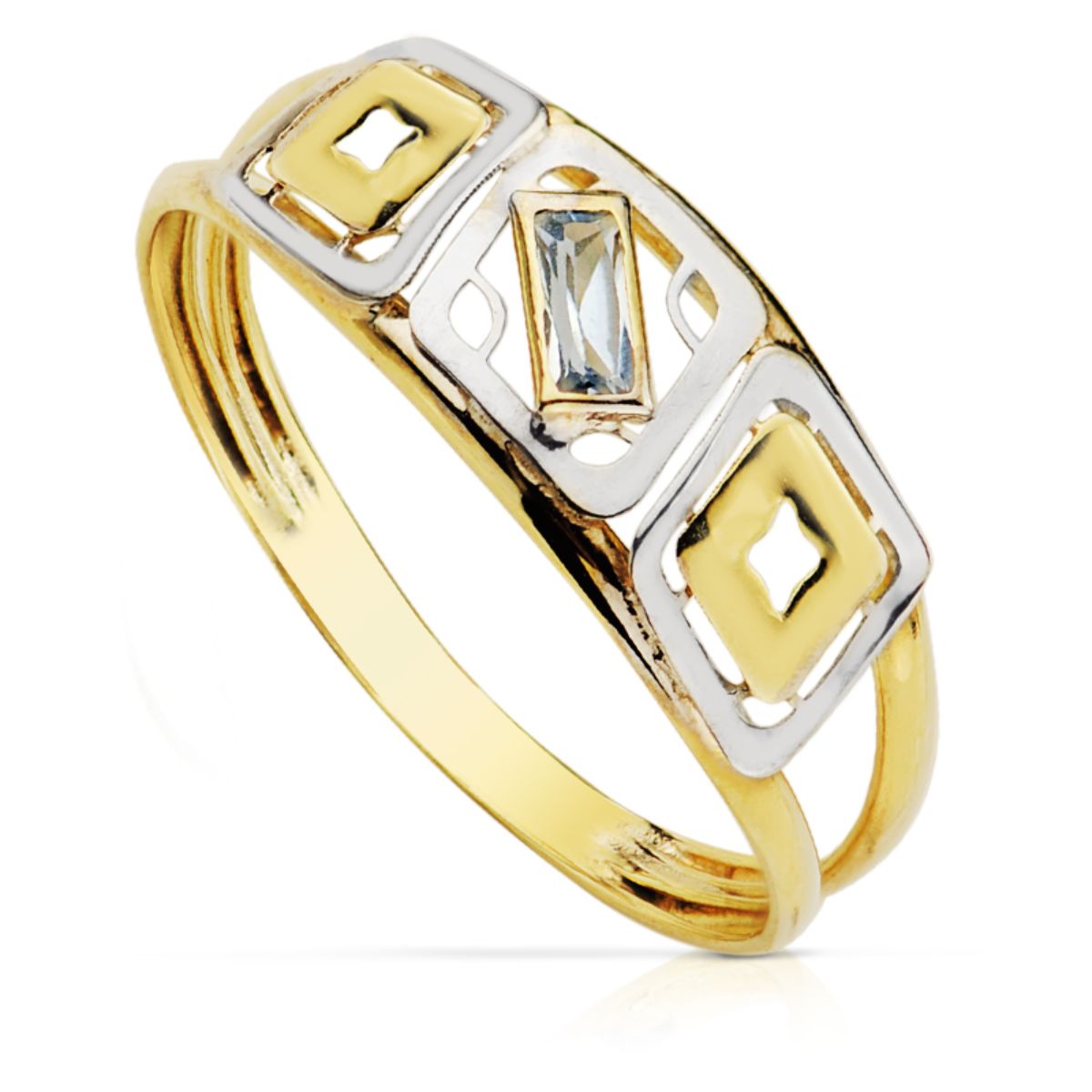 9K SORTIJA ORO BICOLOR DOBLE CUERPO MOTIVO CALADO CON CIRCONITA AMATISTA. ANCHO: 6,5 MM