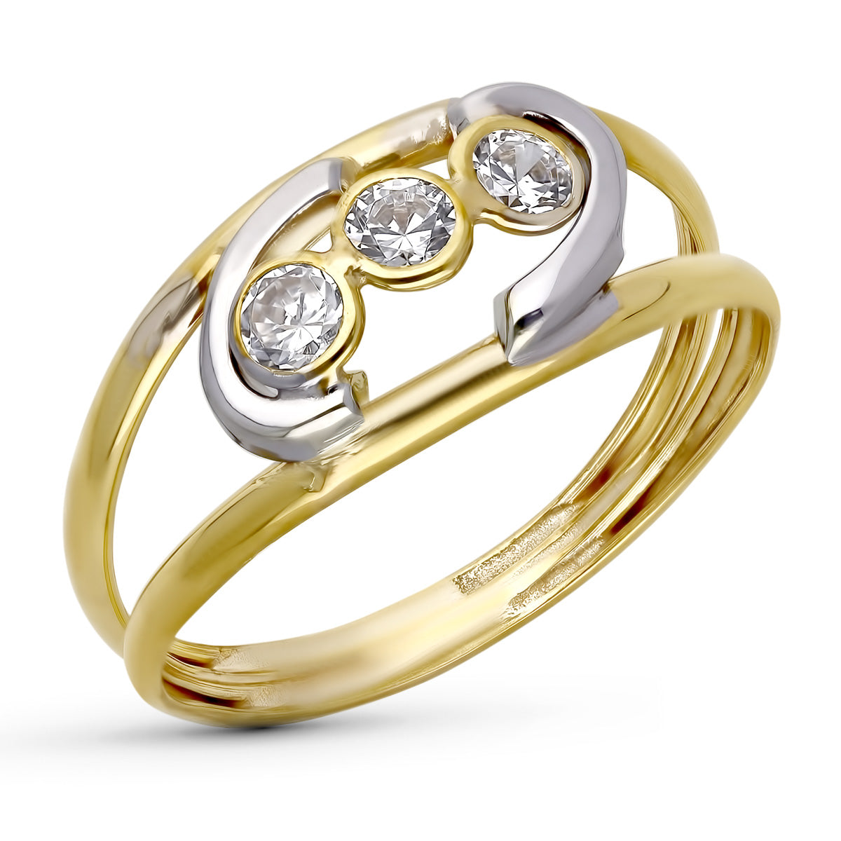 9K SORTIJA ORO BICOLOR DOBLE CUERPO MOTIVO CON CIRCONITAS. ANCHO: 8,5 MM