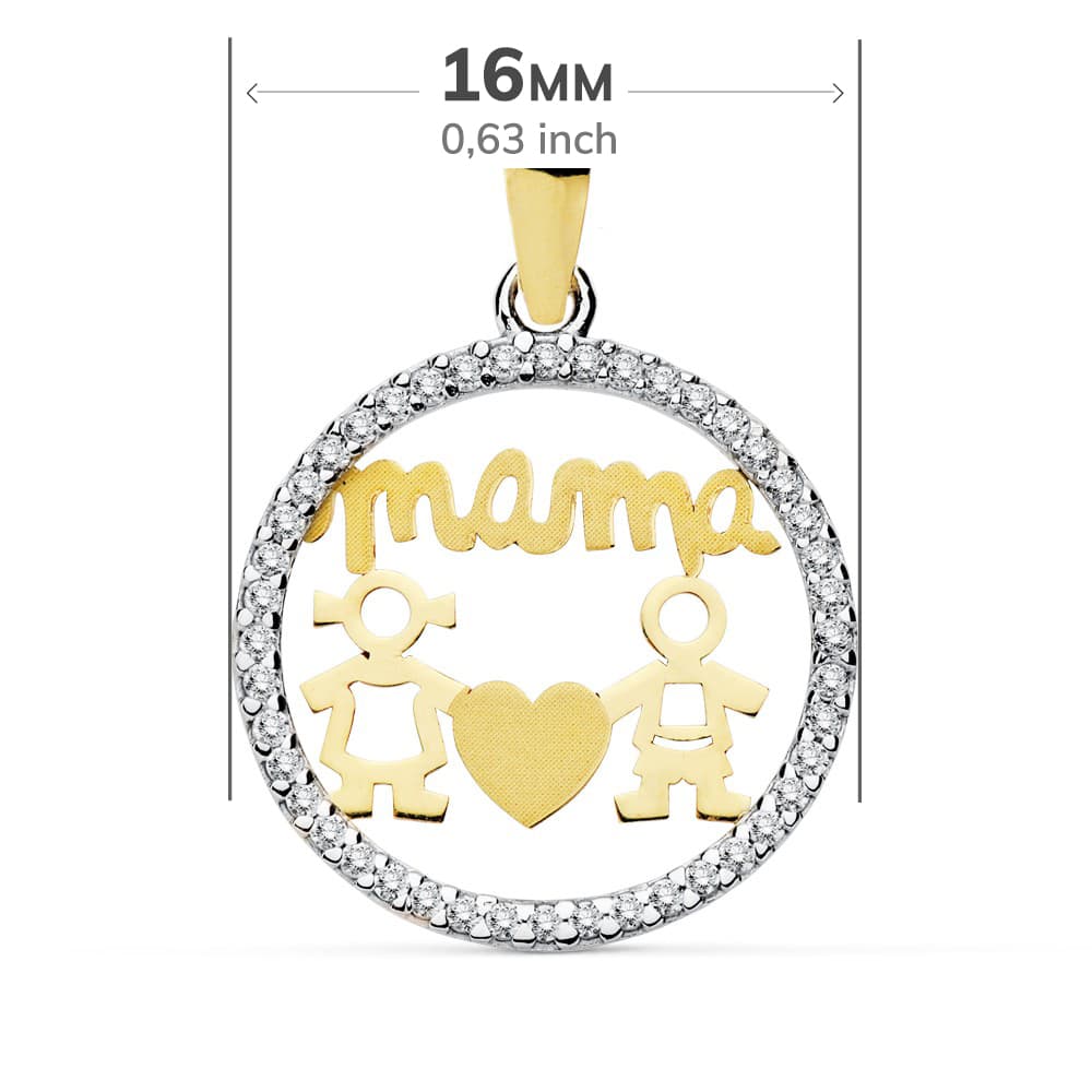 9K COLGANTE BICOLOR MAMA NIÑO Y NIÑA CIRCONITA 16 MM