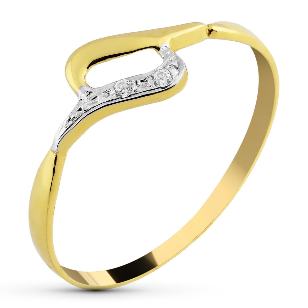 9K SORTIJA ORO BICOLOR MOTIVO CON CIRCONITAS. ANCHO: 5 MM