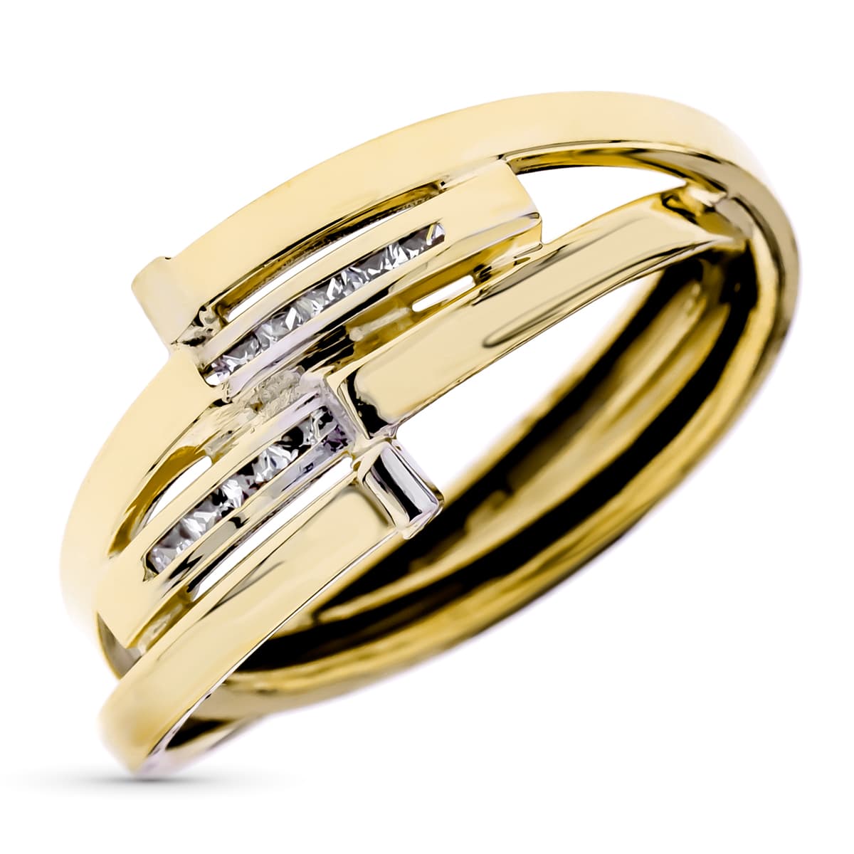9K SORTIJA ORO AMARILLO BANDAS CRUZADAS CON CIRCONITAS EN CARRIL. ANCHO: 10 MM