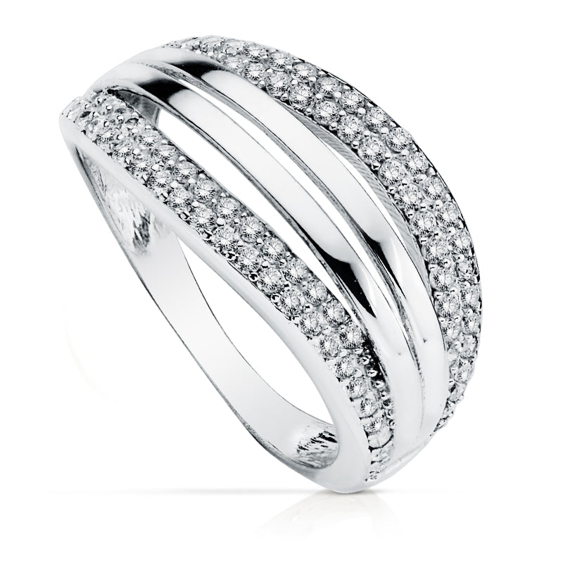 9K SORTIJA ORO BLANCO BANDAS CALADA CON CIRCONITAS. ANCHO: 10 MM