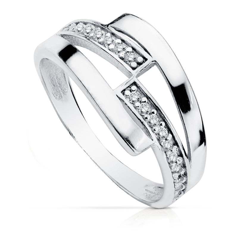 9K SORTIJA ORO BLANCO BANDAS CON CIRCONITAS. ANCHO: 9 MM