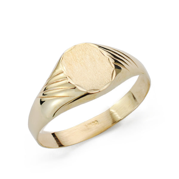 9K SELLO ORO AMARILLO HUECO CADETE TALLADO. ZONA GRABADO: 9X8 MM
