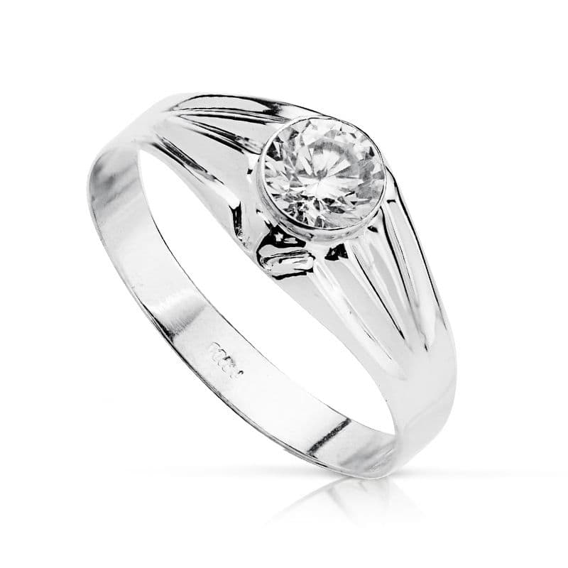 9K SOLITARIO ORO BLANCO HUECO EN BRILLO CON CIRCONITA DE 5 MM. ANCHO: 8 MM