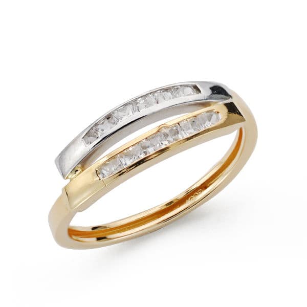 9K SORTIJA ORO BICOLOR BANDAS CON CIRCONITAS EN CARRIL. ANCHO: 5,5 MM