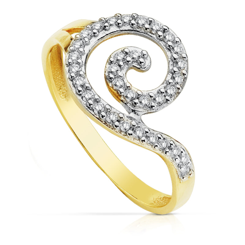 9K SORTIJA ORO BICOLOR REMOLINO CON CIRCONITAS. ANCHO: 11,5 MM