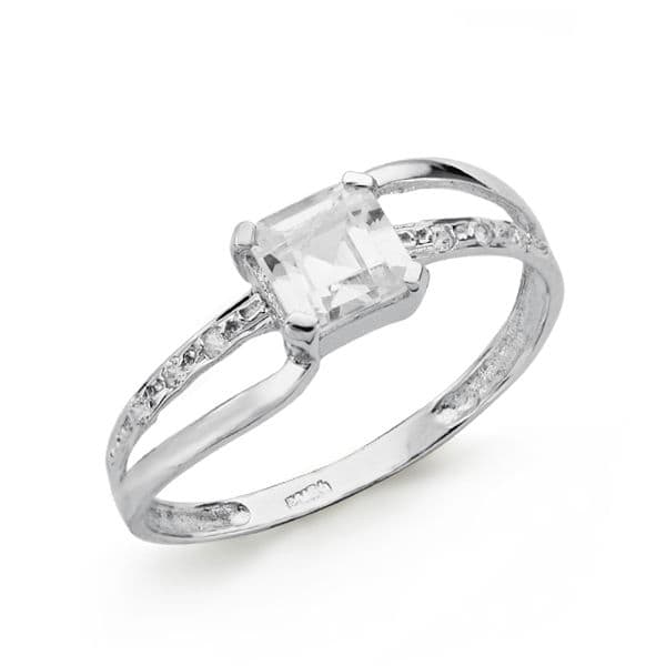 9K SORTIJA SOLITARIO ORO BLANCO CIRCONITA CENTRAL CARRE 5X5 MM. ANCHO: 6 MM