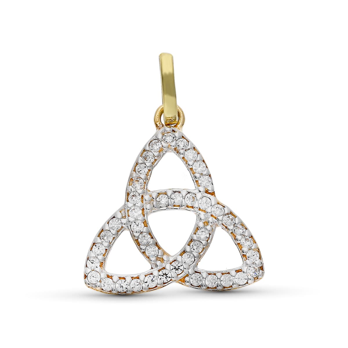 9K COLGANTE ORO BICOLOR TRINITY CON CIRCONITAS. MEDIDA: 16X17 MM