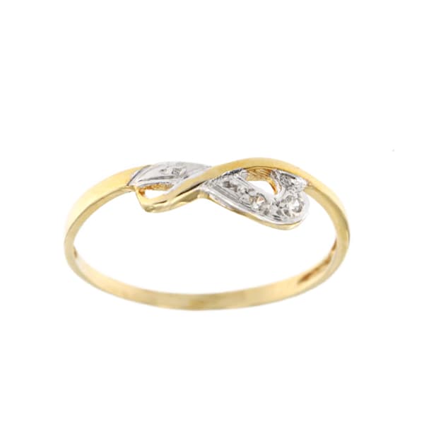 9K SORTIJA ORO BICOLOR ENTRELAZADA CON CIRCONITAS. ANCHO 7 MM