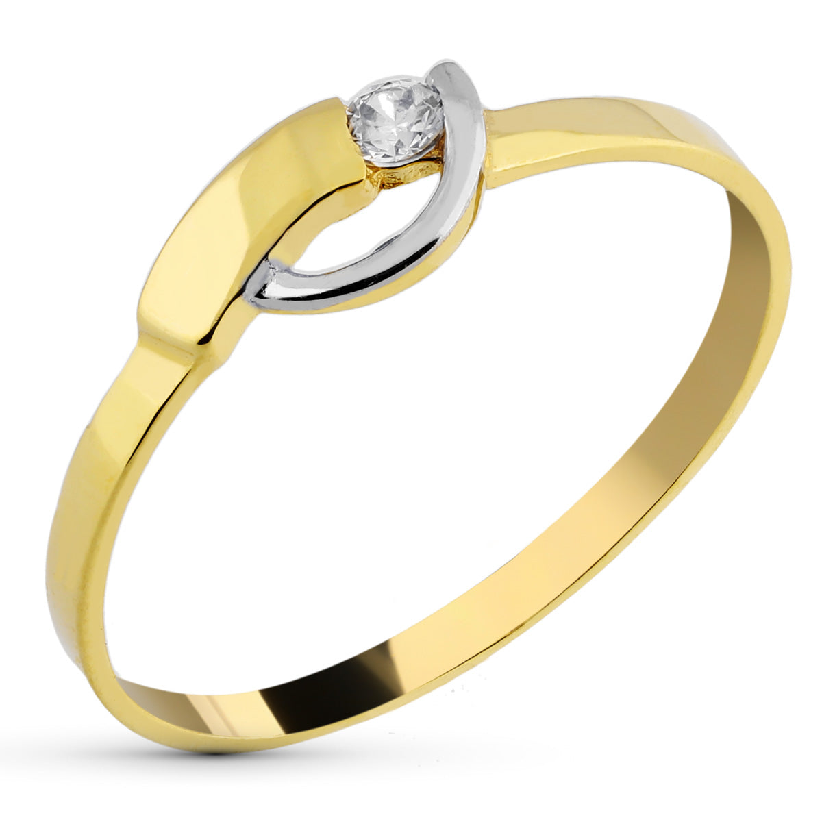 9K SORTIJA ORO BICOLOR BANDAS CON CIRCONITA. ANCHO 5 MM