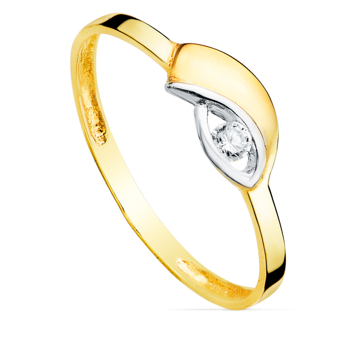 9K SORTIJA ORO BICOLOR MOTIVO HOJA CON CIRCONITA. ANCHO: 5 MM