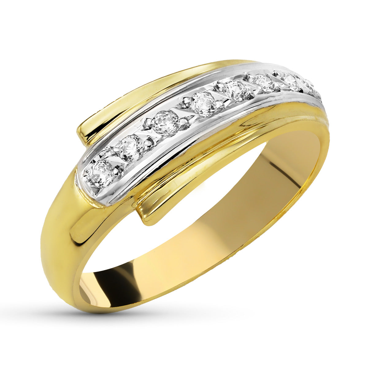 9K SORTIJA ORO BICOLOR MACIZA CON BANDA DE CIRCONITAS. ANCHO: 7 MM