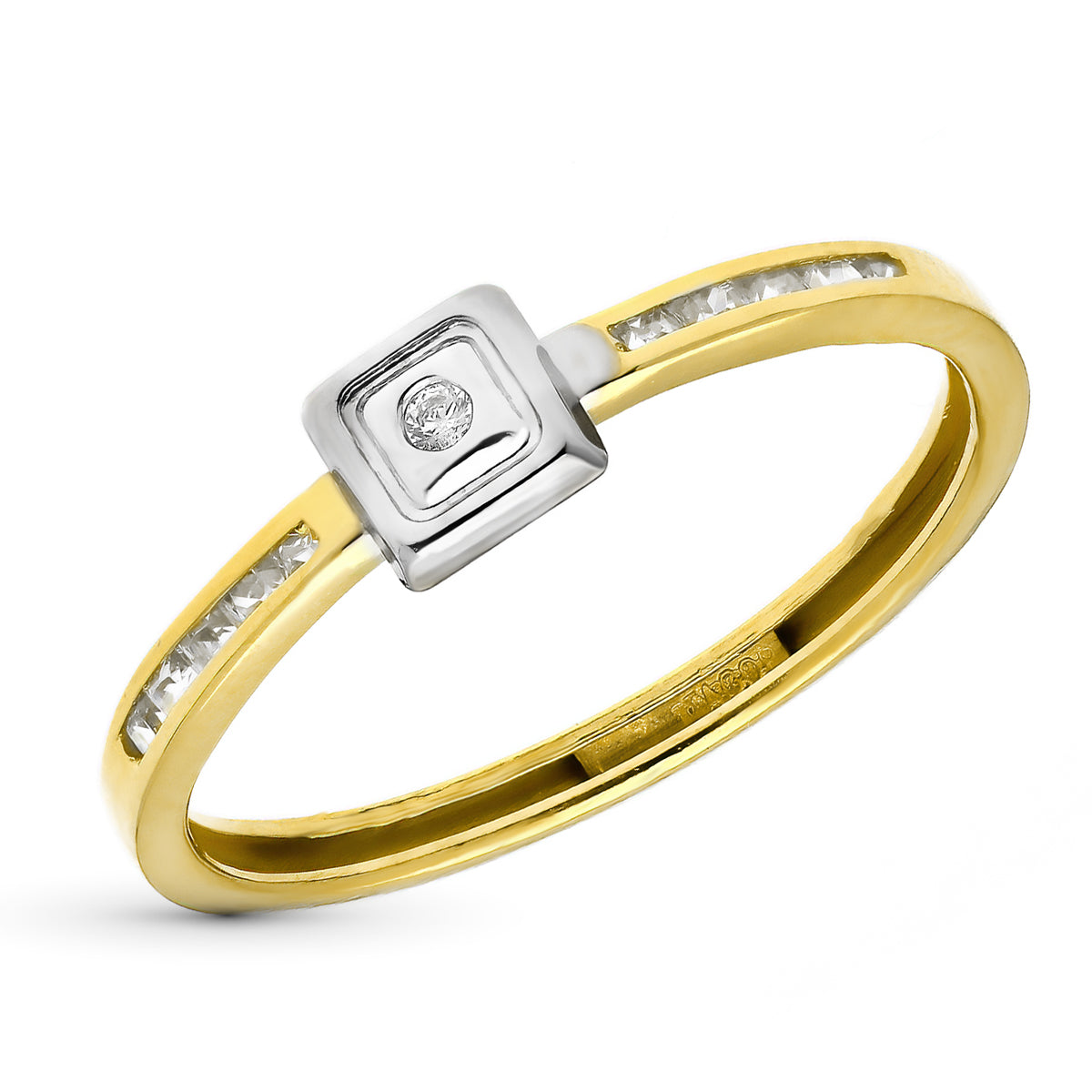 9K SORTIJA ORO BICOLOR MOTIVO CUADRADO CON CIRCONITA. ANCHO 5 MM
