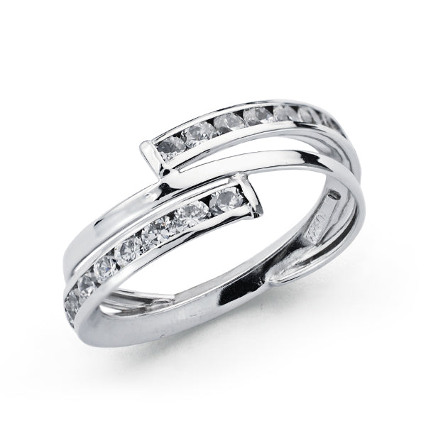 9K SORTIJA ORO BLANCO BANDAS CON CIRCONITAS EN CARRIL. ANCHO: 8 MM
