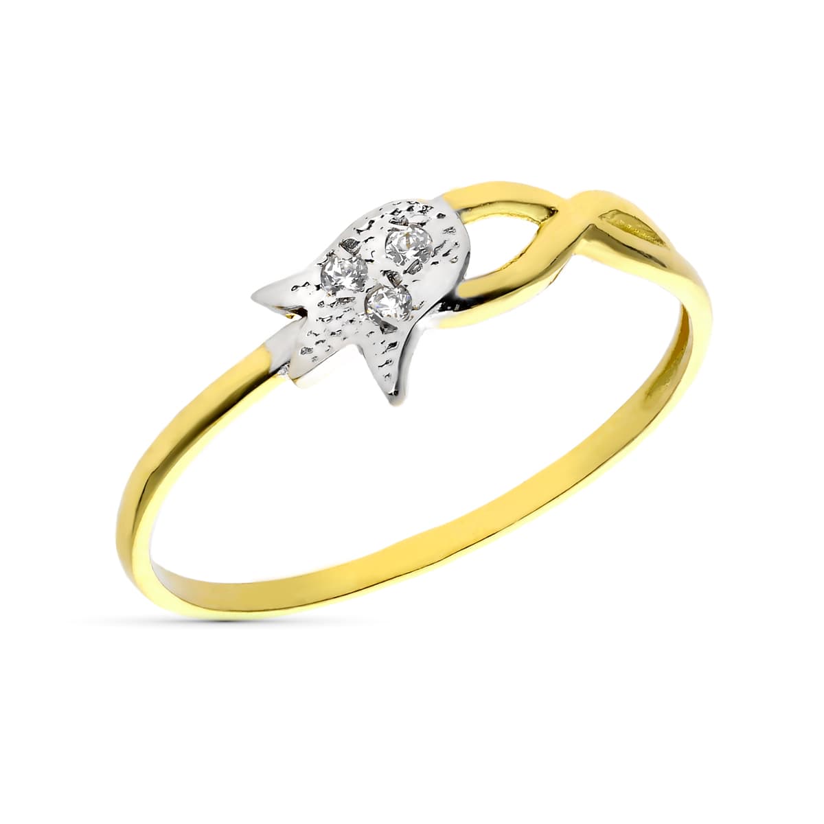 9K SORTIJA ORO BICOLOR TULIPAN CON CIRCONITA. ANCHO 7 MM